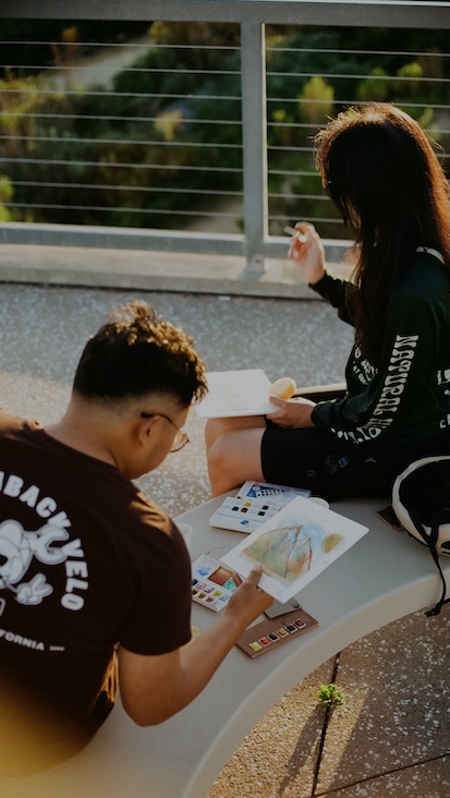 Pedalling, posing and putting paint to canvas.