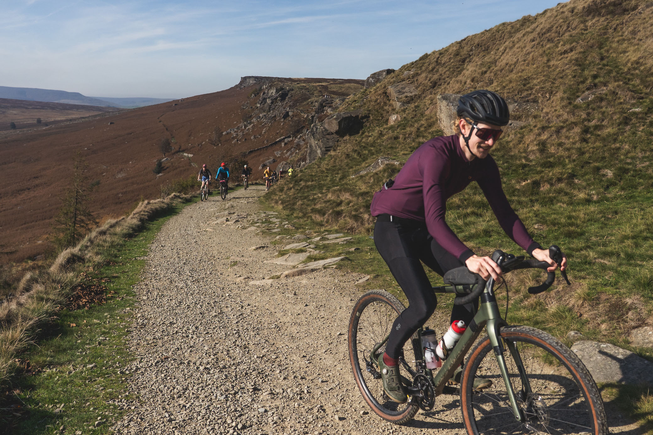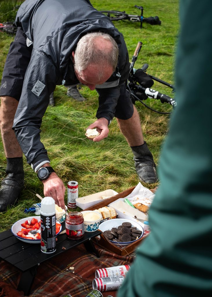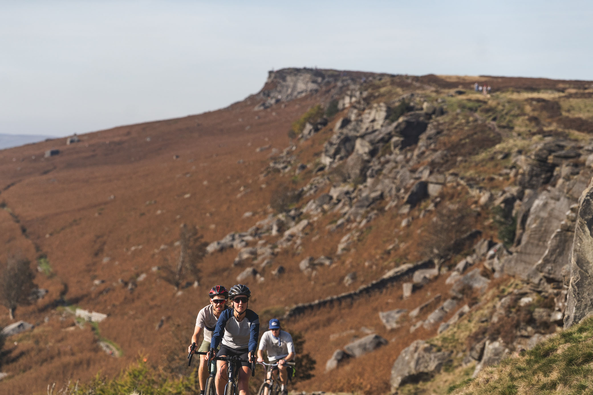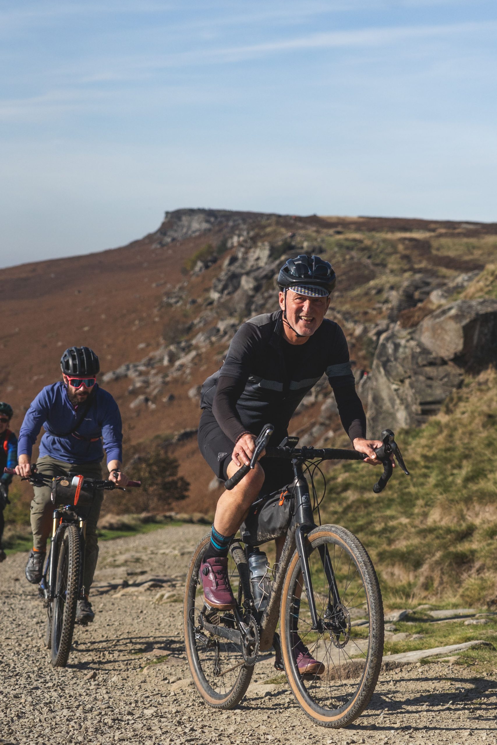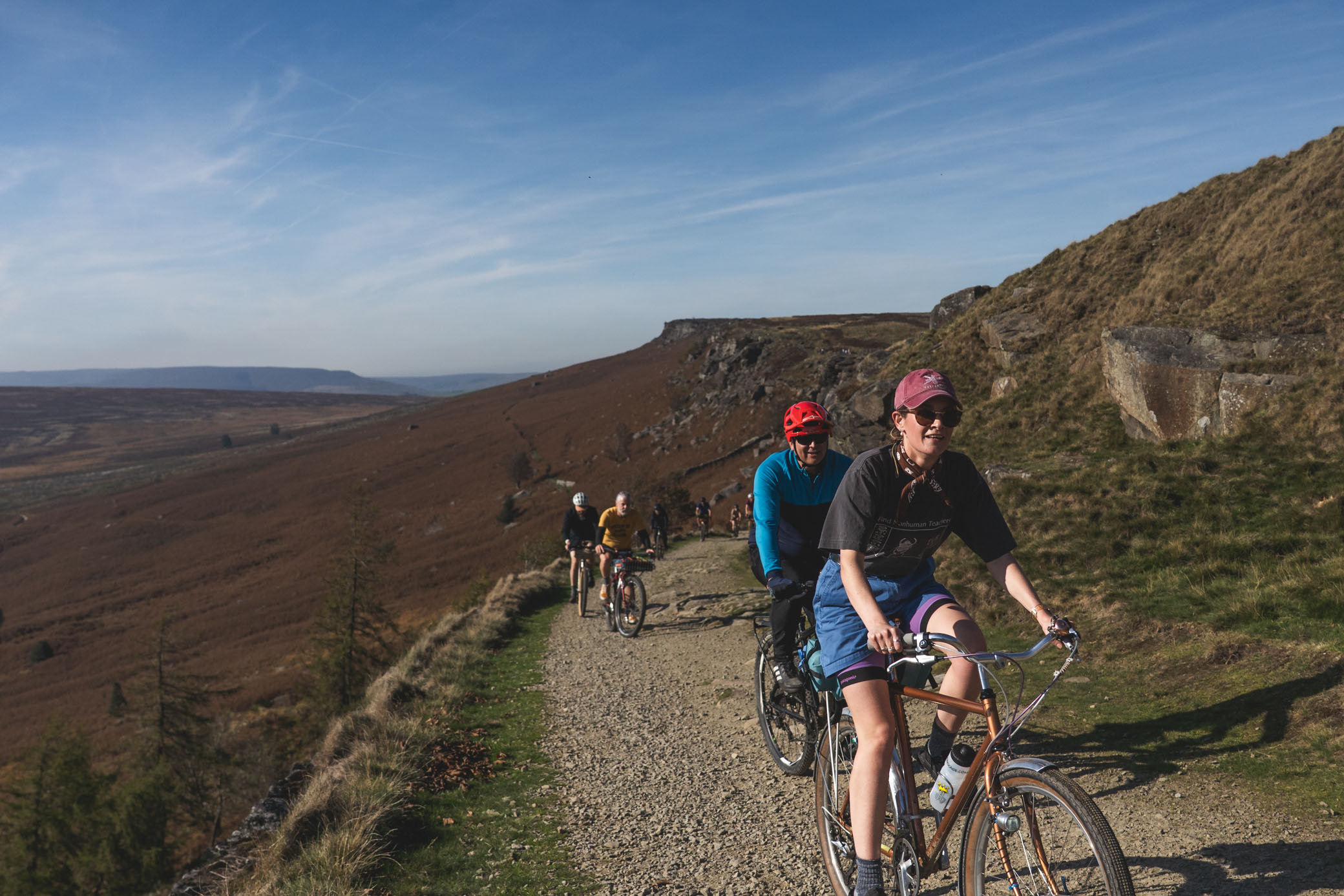 “Our picnic ride headed out into the Peak District to highlight just how accessible the National Park is from our Sheffield base. In the spirit of providing something for everyone we put on two rides simultaneously – one on-road and one-off road – meeting up for a morning cafe stop at David Mellor’s Cutlery Works in Hathersage and climbing together up to our picnic spot at the base of possibly the most famous of the Peak District’s edges, Stanage Edge.”
