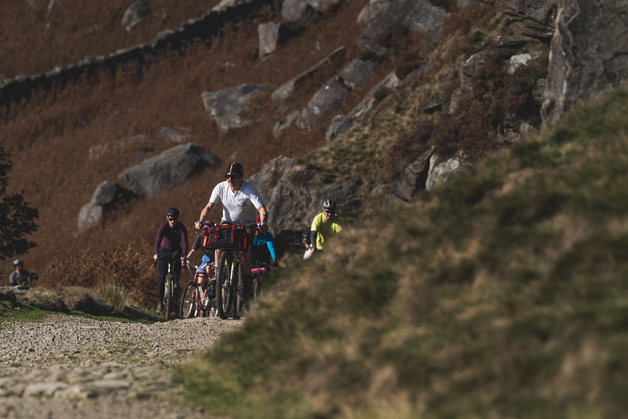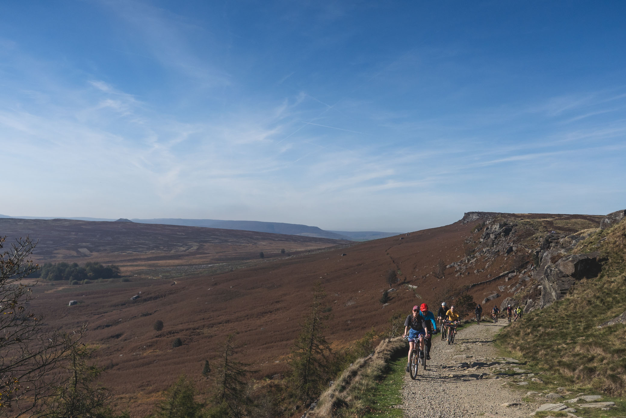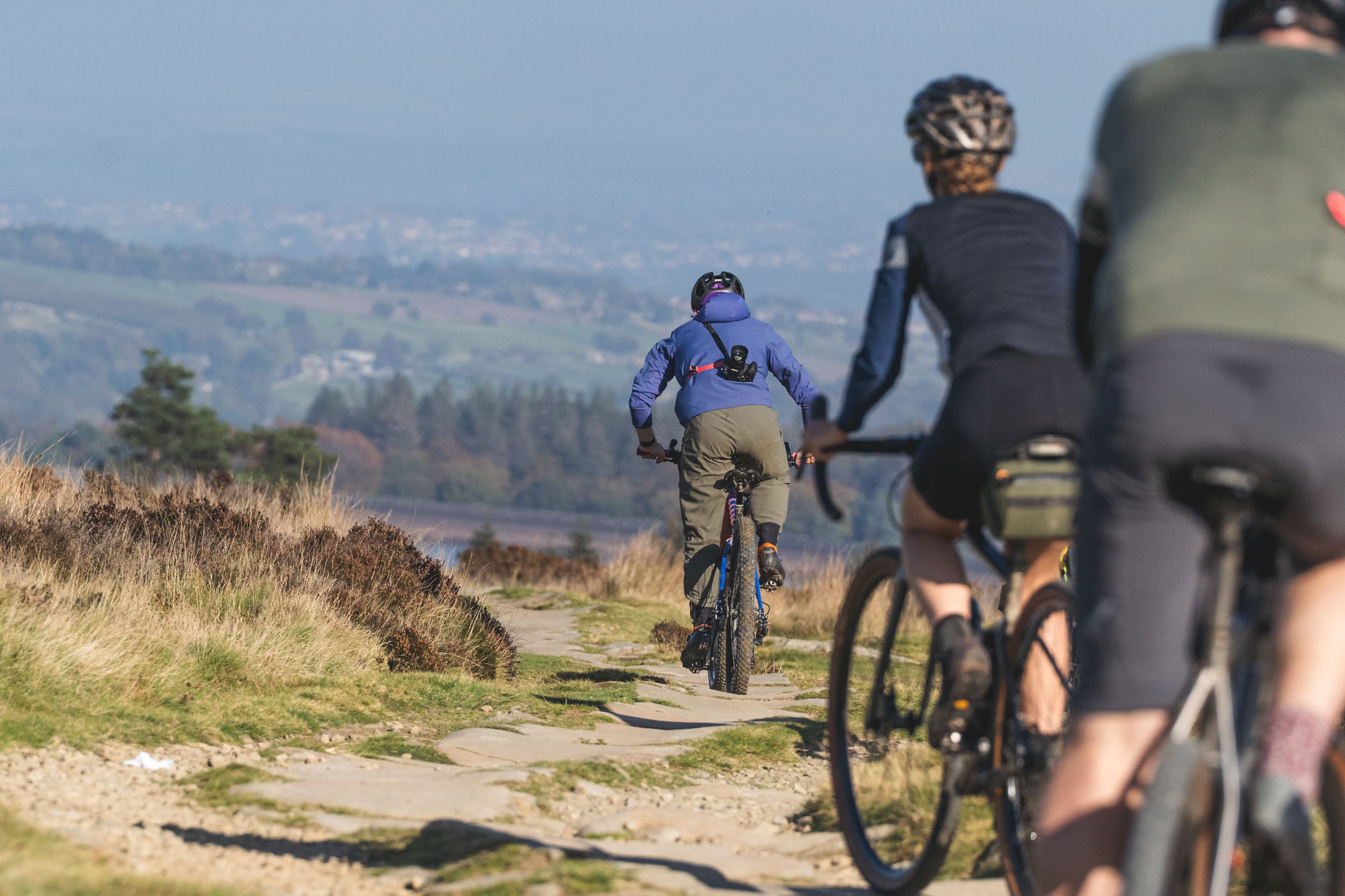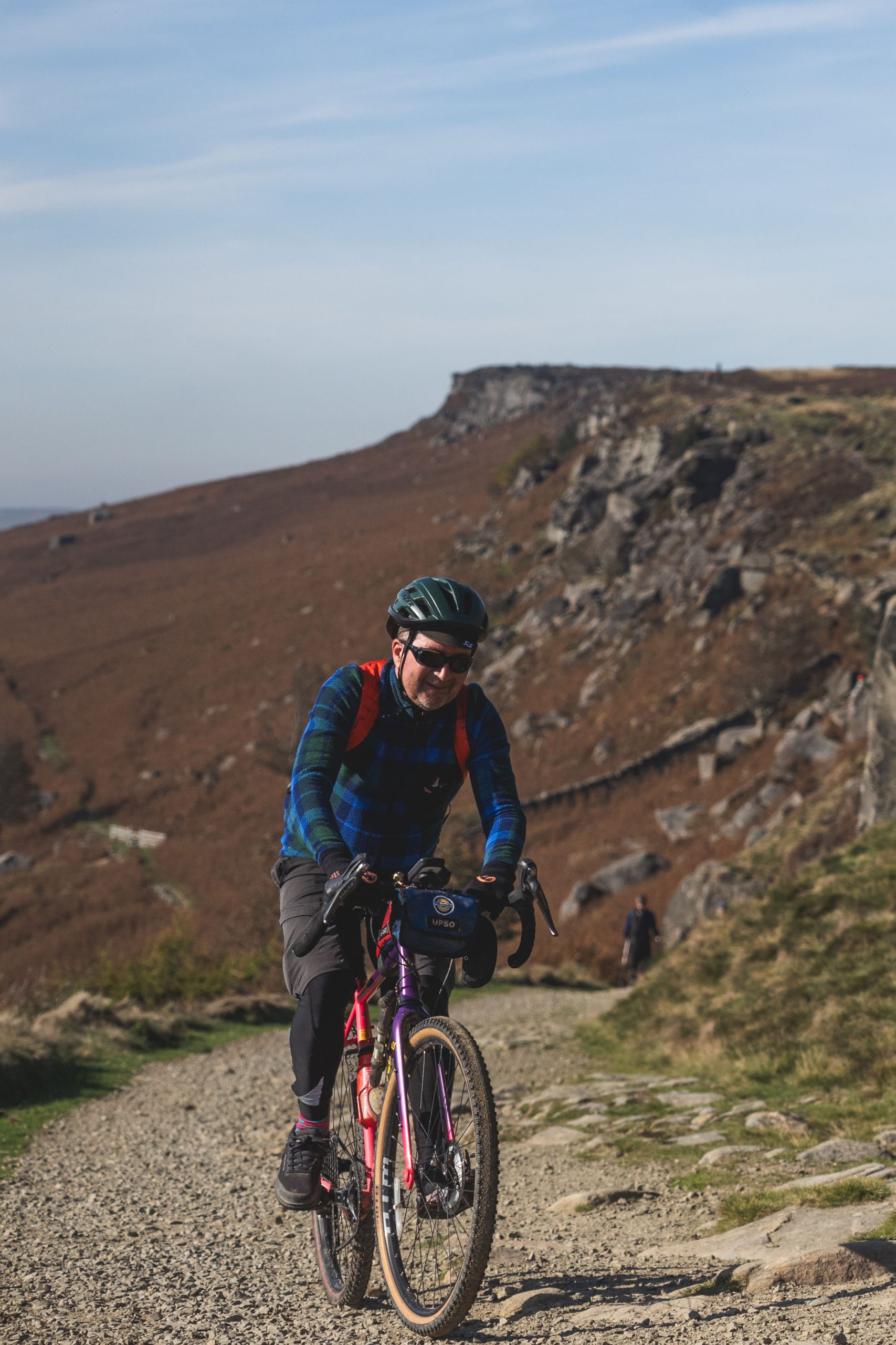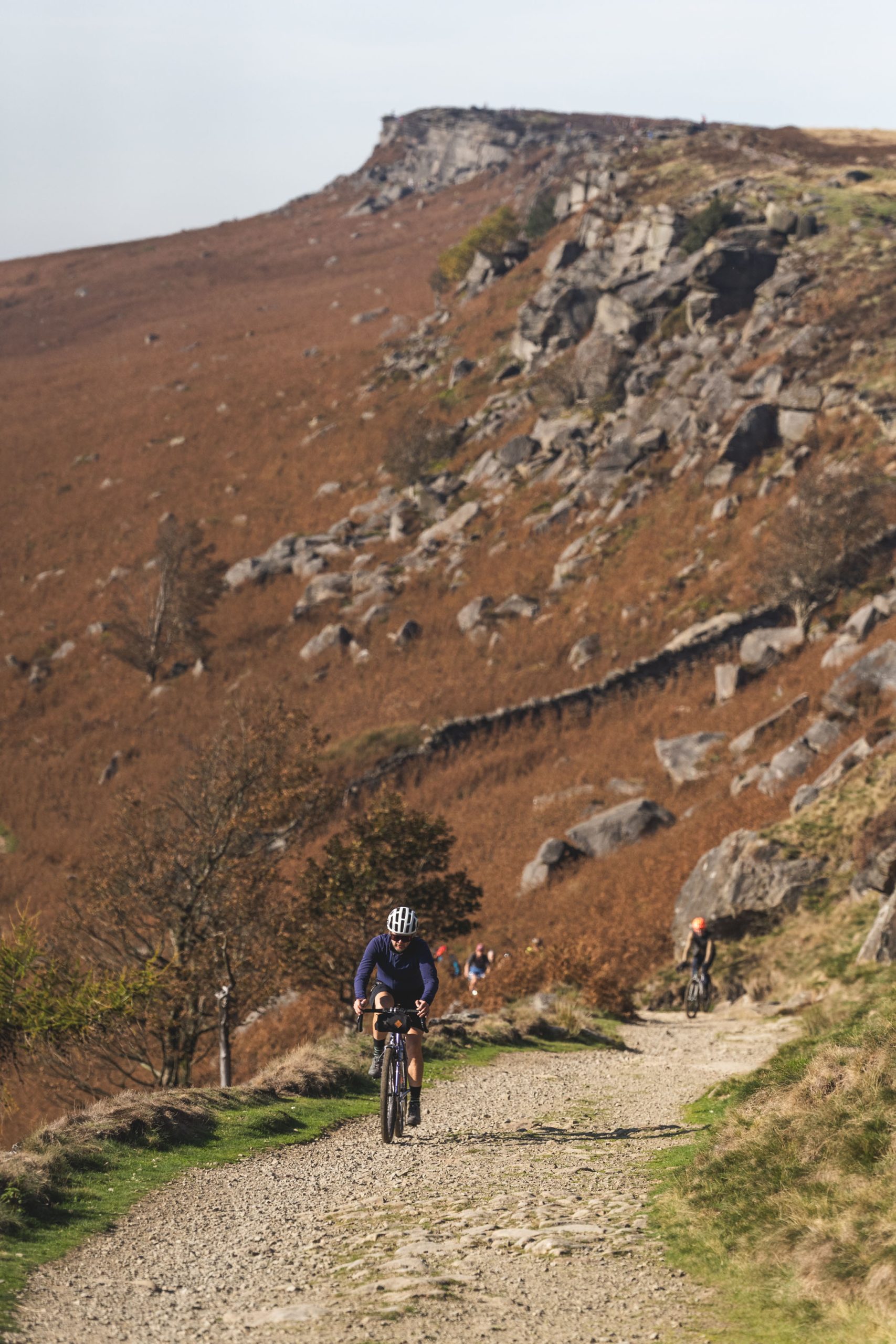 “Our picnic ride headed out into the Peak District to highlight just how accessible the National Park is from our Sheffield base. In the spirit of providing something for everyone we put on two rides simultaneously – one on-road and one-off road – meeting up for a morning cafe stop at David Mellor’s Cutlery Works in Hathersage and climbing together up to our picnic spot at the base of possibly the most famous of the Peak District’s edges, Stanage Edge.”