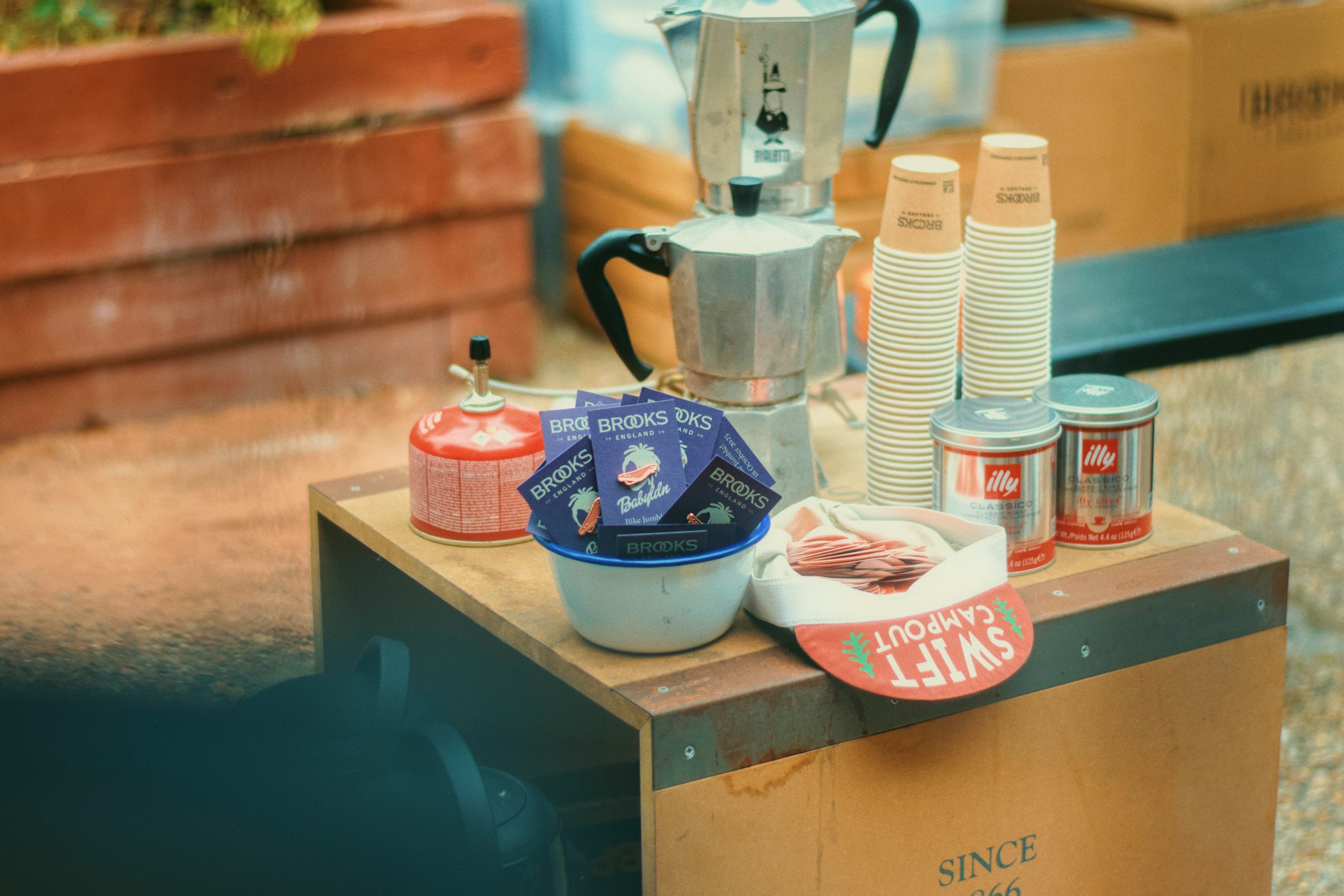 Some of our crew bought personal items from home. Brooks’ events maestro, Stef, is a fifteen-year veteran of the bike world and he brought crates of cycling schwag along; all sorts of bike-camping supplies, cycling literature – an impressive amount to me, but according to Stef it didn’t even “touch the sides” of his collection.